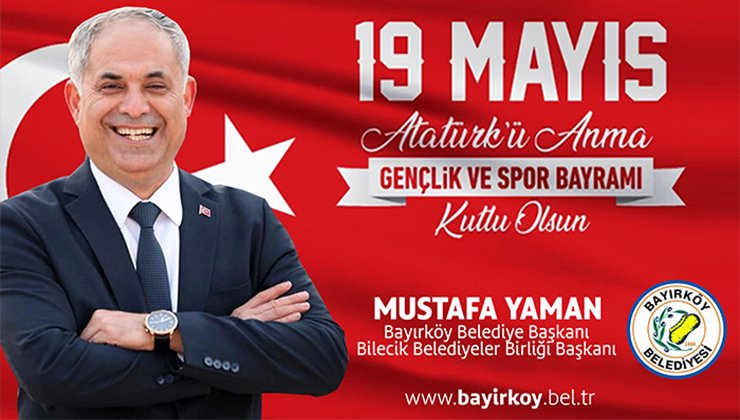 Başkan Yaman’ın 19 Mayıs Atatürk’ü Anma, Gençlik ve Spor Bayramı Mesajı 18 Mayıs 2022, 17:57 yayınlandı + - Paylaş Bu Yazıyı Paylaş veya linki kopyala Kopyala Başkan Yaman’ın 19 Mayıs Atatürk’ü Anma, Gençlik ve Spor Bayramı Mesajı